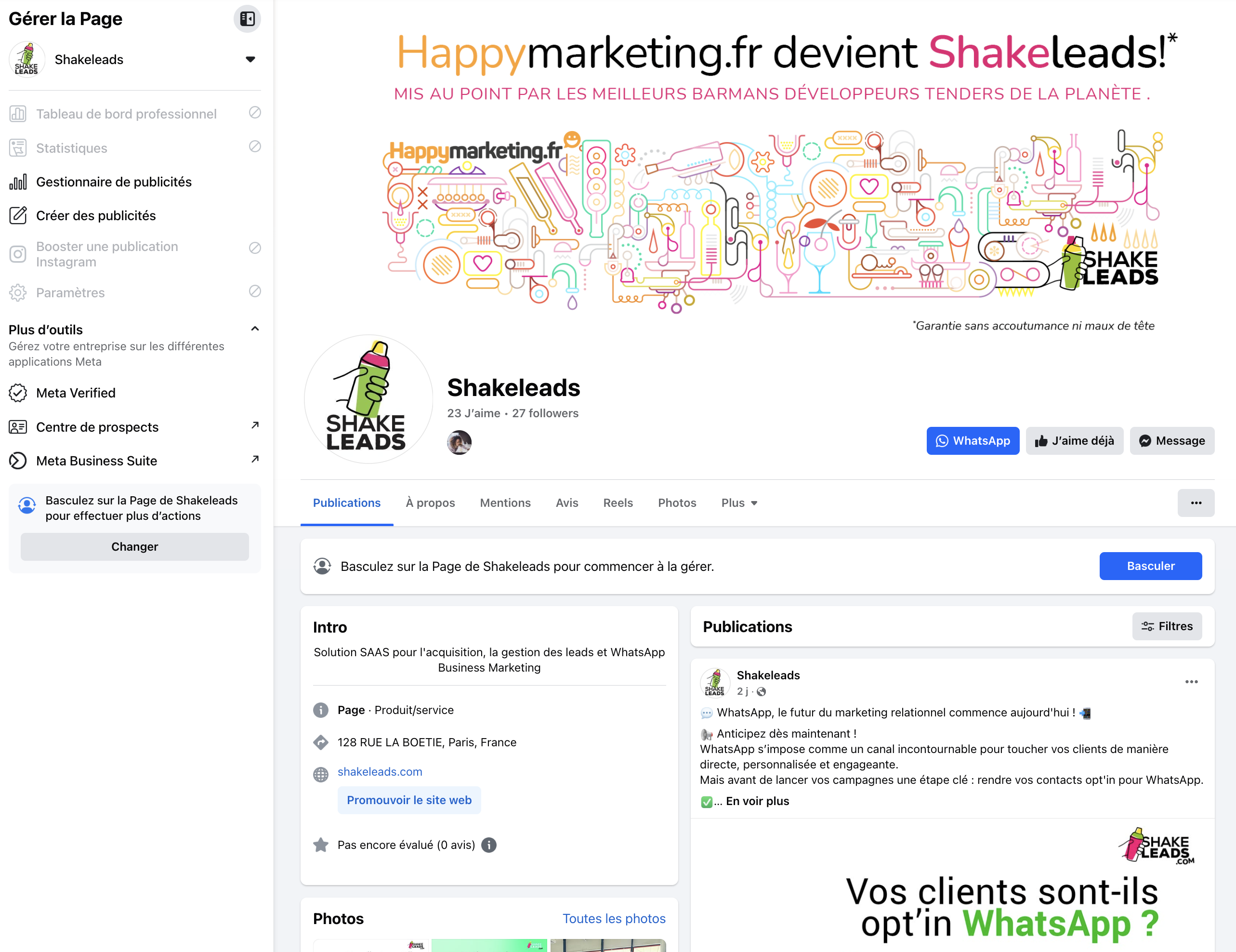 Une fois basculé, vous serez connecté en tant que "votre entreprise" et toutes vos interactions se feront sous le nom de votre entreprise et plus sous votre nom. Il sera important une fois l'opération terminée de basculer à nouveau sur votre compte personnel.
