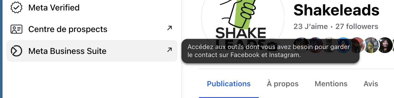 Maintenant que vous avez basculé cliquez dans le menu sur "Meta Business Suite"