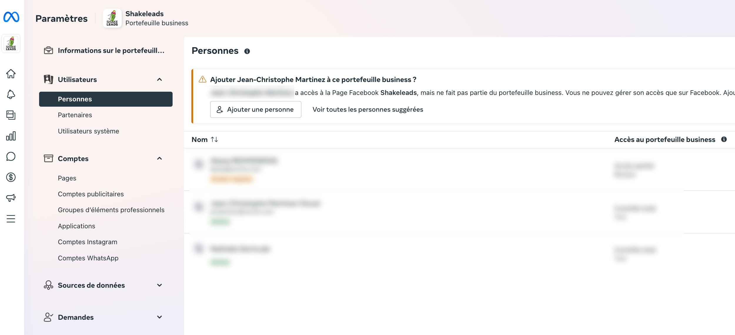 Dans le menu "Personnes" de votre Business Manager vous allez rajouter notre compte administrateur et c'est très simple